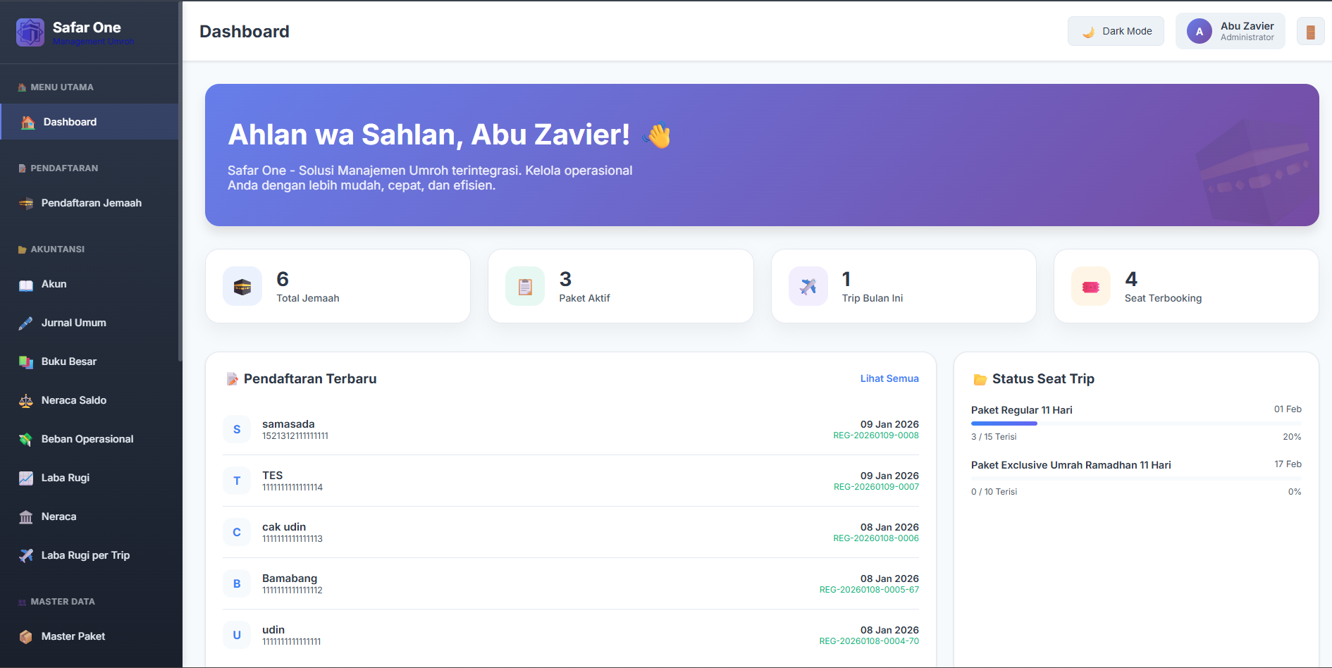 Tentu saja. Sistem Safar One berbasis web, sehingga Anda bisa mengaksesnya dari perangkat apa pun (komputer, tablet, atau smartphone) selama terhubung dengan internet.