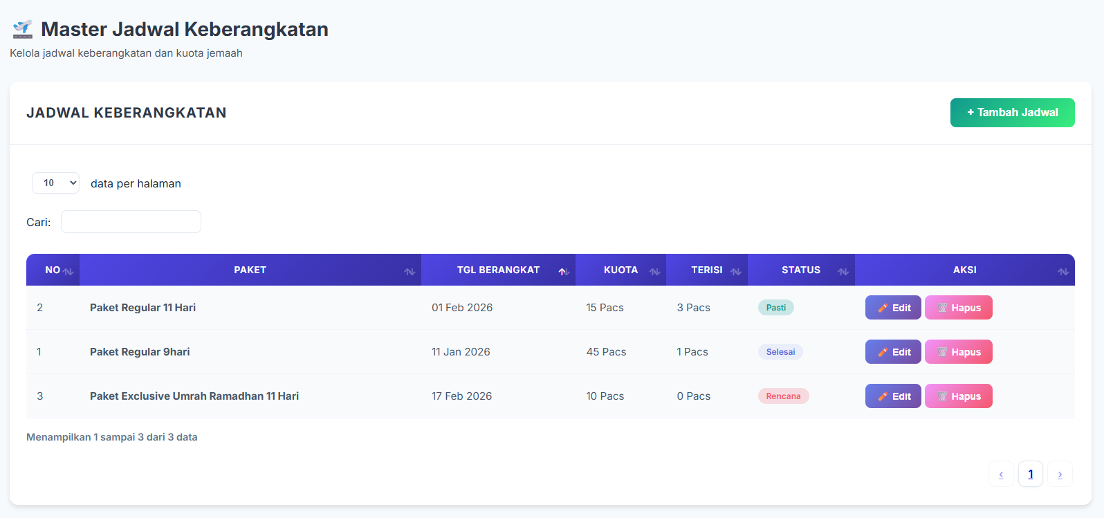 Ya, sistem terintegrasi dengan WhatsApp API untuk pengingat jadwal, pembayaran, dan info keberangkatan.